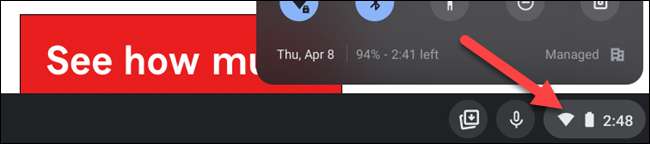 Öncelikle, Chrome OS'S Hızlı Ayarlar panelinden basitçe açabilirsiniz. Panel'i açmak için, görev çubuğundaki saati tıklatın ("raf" olarak da adlandırılır).