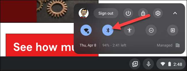 Panel, biri Bluetooth olan bazı geçişler ortaya çıkarmak için açılacaktır (ChromeBook'unuz bunu destekliyorsa). Bluetooth simgesi stilize bir "B" harfidir. Daha önce vurgulanmadıysa, açmak için tıklamanız yeterlidir.