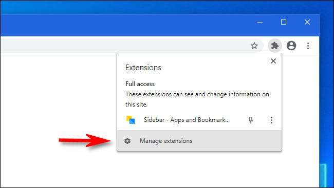 Bir menü açıldığında "Uzantıları Yönet" seçeneğini seçin.
