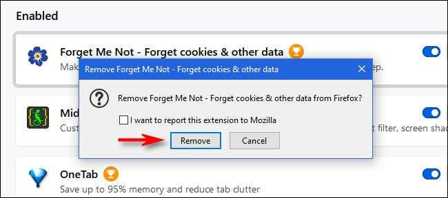 Bundan sonra, bir onay penceresi göründüğünü göreceksiniz. "Kaldır" düğmesini tıklayın ve uzantı Firefox'tan tamamen çıkarılır. Mutlu tarama!