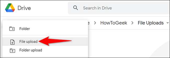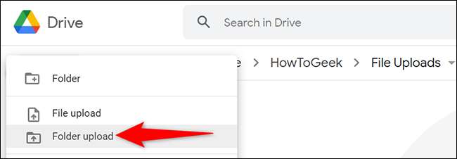 Google Drive'da sol kenar çubuğunda Yeni'yi & gt; Klasör yükle.