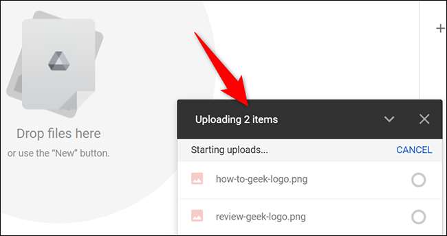Google Drive Sitesinde sağ alt köşede, bir "X öğeleri yükleme" diyalogunu göreceksiniz ("X", yüklediğiniz dosyaların sayısıdır). Bu bölüm, başarıyla yüklenen dosyaların yanında yeşil bir onay işareti gösterecektir.