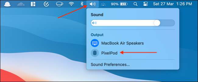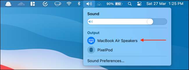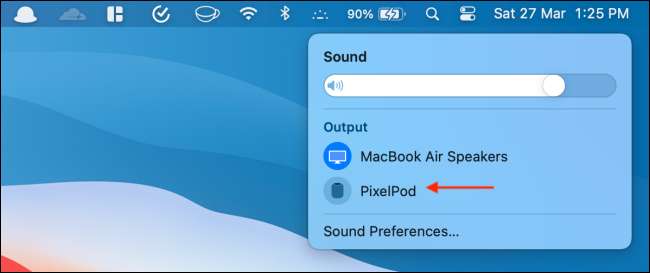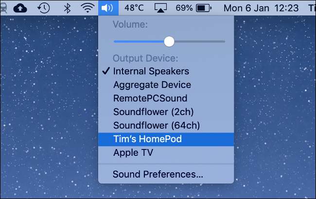 Menü çubuğundan Ses düğmesine tıkladığınızda mevcut tüm cihazları ortaya çıkaracaktır. Sadece buna anahtara HomePod mini'yi seçin.