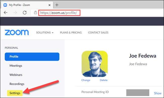 İlk önce oturum açın Yakınlaştırma Web Sitesi Google Chrome gibi bir web tarayıcısında ve hesap sayfanızdaki "Ayarlar" seçeneğini seçin.