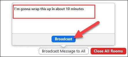 Breakout odaları olsa da, menüyü açmak için araç çubuğunun düğmesini tıklayabilirsiniz. Buradan, "Herkese mesaj yayınlayabilirsiniz."