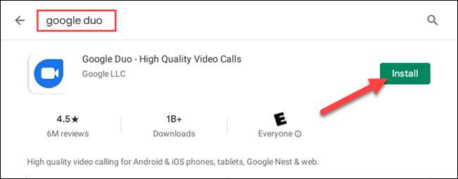 Sonra, “Google Duo” için arama ve “yükleyin.”