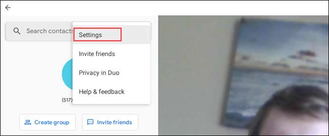 bu Duo ile kullanmak istediğiniz hesabı değilse Ancak, ayarlardan çıkış yapabilirsiniz. Arama çubuğuna üç noktalı menü simgesini tıklayın ve “Ayarlar”.