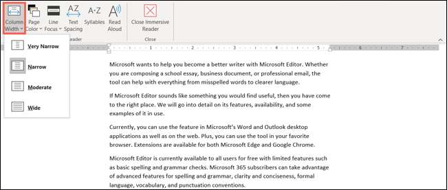 İçinde Word'ün çevrimiçi versiyonu , Sürükleyici okuyucu derhal sayfanızı büyük, daha geniş bir görüşe dönüştürür. Benzer özelleştirmeler seçenekleriniz var, ancak bunlar üç simge olarak sağ üstte görünür.