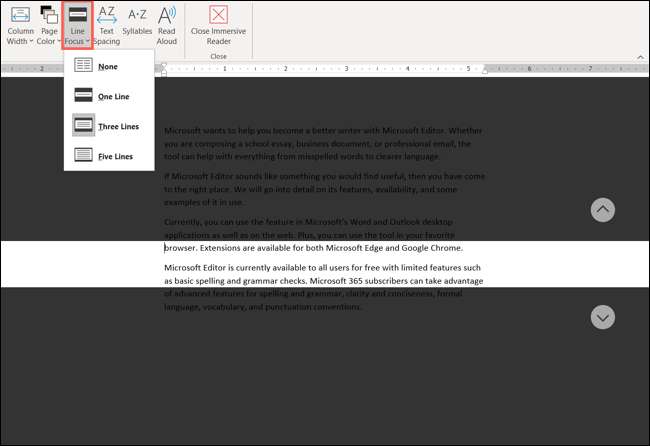 Satır odak noktası : Bir satır, üç satır, beş satır veya hiçbiri kullanın. Bu, sayfanın kalan bölümlerini karartırken odak noktanız için seçtiğiniz satır sayısını vurgular.