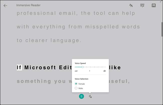 Yüksek sesle oku : Belgeyi size yüksek sesle okuyan duymak istiyorsanız, "Yüksek sesle oku" ı tıklayın. Sadece kelimeleri duymaz ama aynı anda vurgulandığını göreceksiniz. Araç çubuğu açıldığında, ayarları açmak için Dişli simgesini tıklatın. Daha sonra kullanılan okuma hızını ve sesi ayarlayabilirsiniz. Ardından, Gerektiği gibi oyun, duraklat, sonraki veya önceki düğmeleri kullanın.