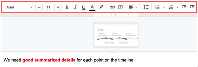 Notlarınızı biçimlendirmek için Google Slaytlar Araç Çubuğunu da kullanabilirsiniz. Yazı tipi stilini veya boyutunu değiştirin, renk uygulayın, cesur veya italik uygulayın veya numaralı veya kurulu bir liste kullanın.