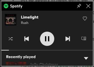 Artık oyun çubuğu kaplamayı açtığınızda yüzen bir spotify oyuncusu göreceksiniz. Oynatma kontrolleri ve cihaz seçeneklerinin yanı sıra genişletilebilir bir "son oynanan" bir geçmişe sahiptir.