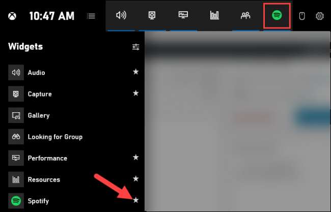 Widget menüsünü tekrar açabilir ve ardından oyun çubuğu araç çubuğuna bir kısayol eklemek için "Spotify" nin yanındaki yıldıza tıklayın.