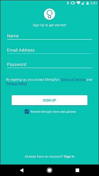 Stringify kullanmanın küçük bir dezavantajı vardır: Yalnızca mobildir. Başlamak için uygulamayı indirin Android veya iOS . Uygulamayı ilk açtığınızda bir hesap oluşturmanız gerekecektir. Adınızı, e-posta adresinizi girin ve bir şifre oluşturun, ardından Kaydol'u tıklayın.