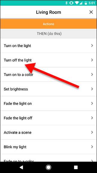 Eylemler listesinde "Işığı kapat" a dokunun. Ardından sonraki ekranda Kaydet'e dokunun.