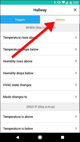 Ekranın üst kısmındaki Eylemler sekmesine dokunun ve listeden "Sıcaklığı ayarla" yı seçin.