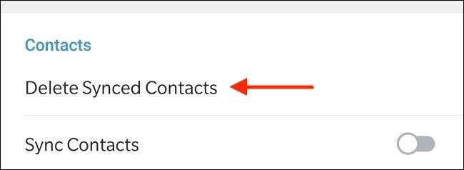 Uygulama Synced Rehber'i silmek için "Synced Rehber Sil" düğmesine dokunun.