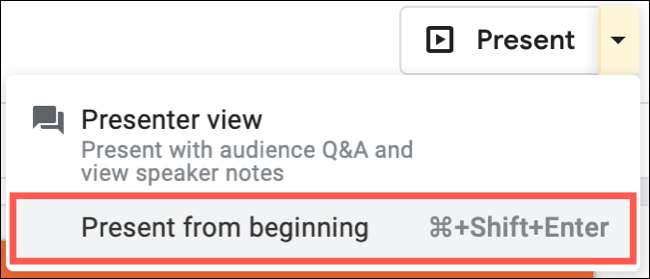 Slayt gösterisini açtıktan sonra, View & GT; Menüden mevcut veya sağ üst köşedeki aşağı açılır bırakmayı kullanın ve "başlangıçtan itibaren mevcut" seçeneğini seçin.