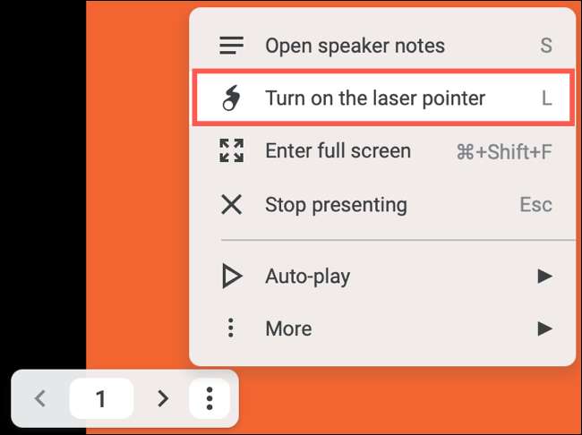 Dahili kırmızı lazer pointer ile, bir slaydın parçalarını vurgulamak bir esintidir. Menüdeki "Lazer Pointer'ı aç" ı tıklayın. Lazer işaretçisini kapatmak veya klavyenizdeki "L" tuşunu hızlı bir kısayol için tekrar tıklatabilirsiniz.
