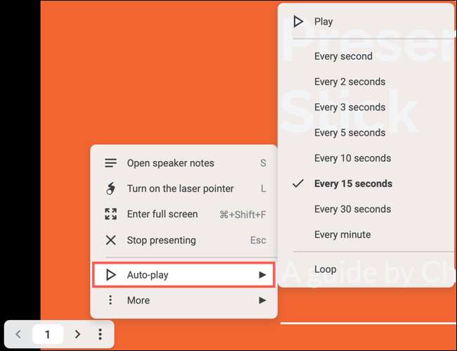 Slayt gösterisini kendi başına oynatmak için tercih ederseniz, taşma menüsünde "Otomatik Oynat" seçeneğini seçin. Her slayt için bir pop-out zaman aralıkları listesi göreceksiniz. Birini seçin ve gösteriyi otomatik olarak izleyin.