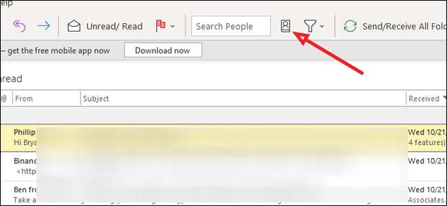 Outlook'ta, başlamak için "Rehber" simgesini tıklayın.