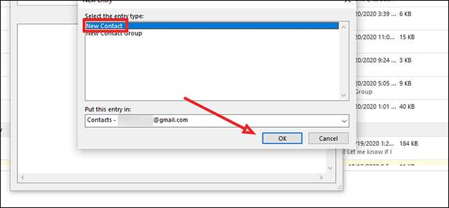 "Yeni Kişi" yi seçin ve ardından "Tamam" düğmesini tıklayın.