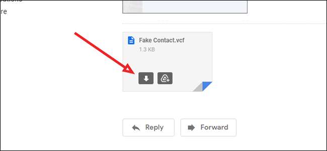 E-posta mesajını açın ve ekteki vCard'da "İndir" i tıklayın.