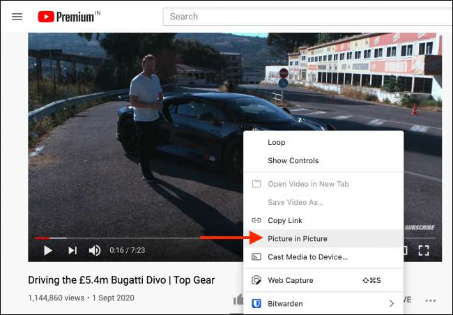 Burada bir "resimdeki resim" seçeneğini bulacaksınız. Eğer biri mevcut değilse, PIP özelliği bu web sitesinde mevcut değildir. Sadece video oynatımını, resim içi bir pencerede ayarlama seçeneğini seçin.