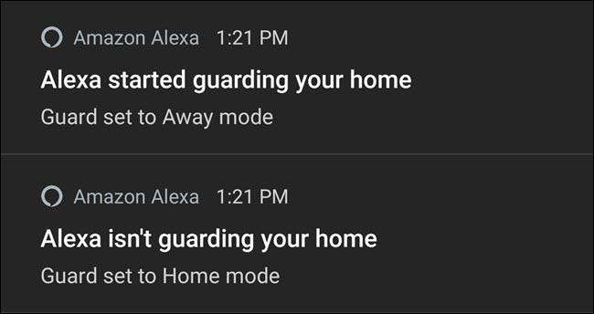 Etkinleştirildikten sonra, Alexa'ya "Ayrılıyorum" diyerek Korumayı kurarsınız ve "Evdeyim" diyerek etkisiz hale getirirsiniz. Echo'nuz korumaya başladığını veya durdurduğunu söyleyecektir. Telefonunuzda da bir Alexa bildirimi alacaksınız.