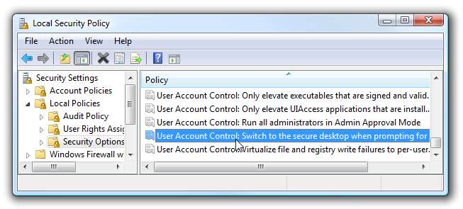 Pencerenin sağ tarafında aşağı doğru kaydırın ve "Kullanıcı Hesabı Kontrolü: Yükseltme isterken güvenli masaüstüne geçin" başlıklı öğeyi bulun. Açmak için üzerine çift tıklayın, ardından devre dışı olarak değiştirin: