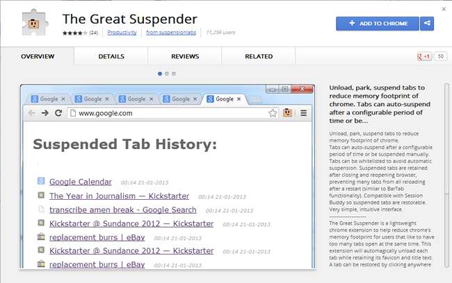 Chrome, yıllar içinde oldukça sadık bir takipçi kitlesi oluşturdu, ancak usta bir web tarayıcısı olmasına rağmen, sekme yönetimi söz konusu olduğunda sorun yaşıyor. Siz gittikçe daha fazla sekme yükledikçe Chrome’un bellek kullanımının artması uzun sürmez ve başlama zamanları çok yavaş olabilir. Kullanmak Büyük Askı uzantısı ile her şeyi kontrol altına alabilirsiniz.