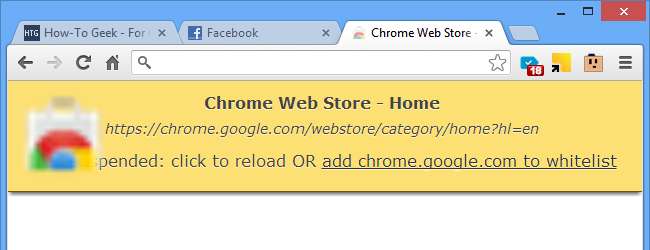 Askıya alma sayfası göründüğünde, mevcut sekmeyi beyaz listeye eklemek için bağlantıya tıklayabilirsiniz. Bunu yaptığınızda, "Tüm sekmeleri askıya al" seçeneğini seçebilirsiniz ve belirlediğiniz sekmeler dokunulmadan kalacaktır.
