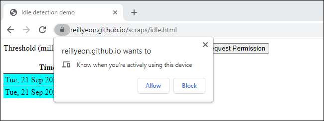 Chrome 94 tartışmalı bir rölanti algılama API . Temel olarak, web siteleri, Chrome'u bir web sayfası açılı bir kullanıcının cihazlarında boşta olduğunda rapor verebilir. Bu sadece Chrome veya belirli bir web sitesi kullanımı hakkında değil: Bilgisayarınızdan uzağa bastıysanız ve herhangi bir uygulamayı kullanmazsanız, Chrome web sitesine bilgisayarınızı etkin bir şekilde kullanmadığınızı söyleyebilir.