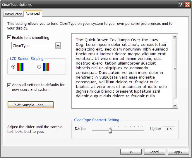 Clear Type Tuner - Bu, monitörünüze metinlerin daha net ve keskin görünmesi için iyi çalışır. Bunu özellikle eski monitörlerde kullanışlı buluyorum.