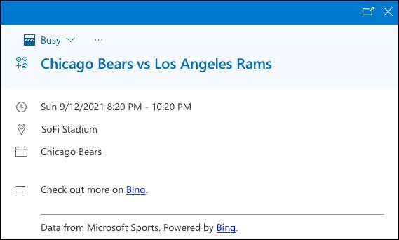 Daha fazla ayrıntı için takvimde etkinlik (oyun, maç veya havalandırma) tıklayın. küçük olay penceresi açıldığında, Görünüm Olay doğru daha fazla seçenek için üst ok tıklayabilirsiniz.