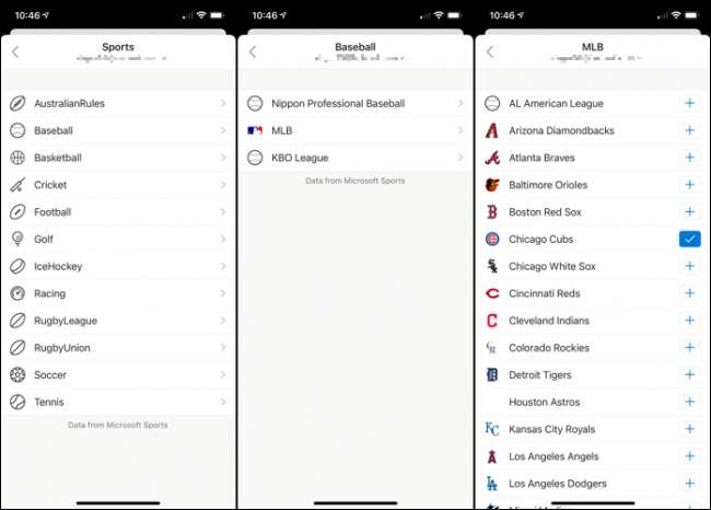Bir spor seçin bir lig almak ve sonra takip etmek istediğiniz her takımın kutusunu işaretleyin.