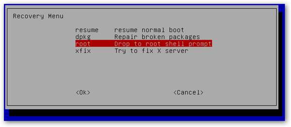 Kurtarma modu seçeneğiniz yoksa bu, bir kök kabuğuna izin vermek için grup seçeneklerini manuel olarak düzenlemenin alternatif yoludur.