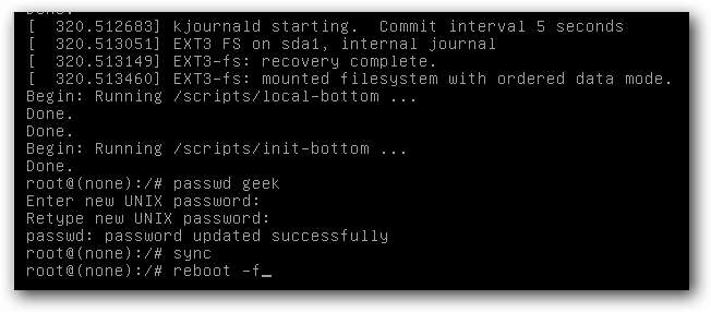 Parolanızı değiştirdikten sonra, sisteminizi yeniden başlatmak için aşağıdaki komutları kullanın. (Sync komutu, yeniden başlatmadan önce verileri diske yazmayı sağlar)