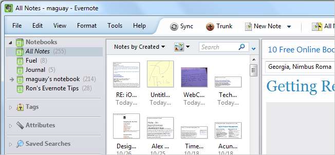 Birkaç dakika sonra, tüm notlarınızı yeni Evernote 4'te göreceksiniz. Evernote'un daha eski bir sürümü zaten yüklüyse, önceden senkronize ettiğiniz notları içe aktaracaktır; aksi takdirde, tüm notlarınızın indirilmesi birkaç dakika sürebilir.