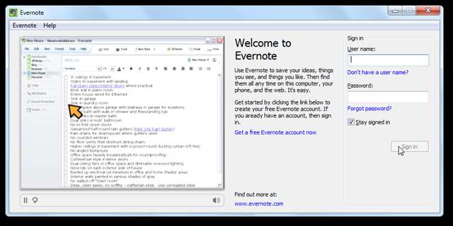 Ardından hesap bilgilerinizi tekrar girmeniz gerekecek veya Evernote'u kullanmaya yeni başlıyorsanız, yeni bir hesap oluşturun. Kontrol Oturum açık kalsın Evernote'u her kullandığınızda hesap bilgilerinizi yeniden girmek zorunda kalmak istemiyorsanız.