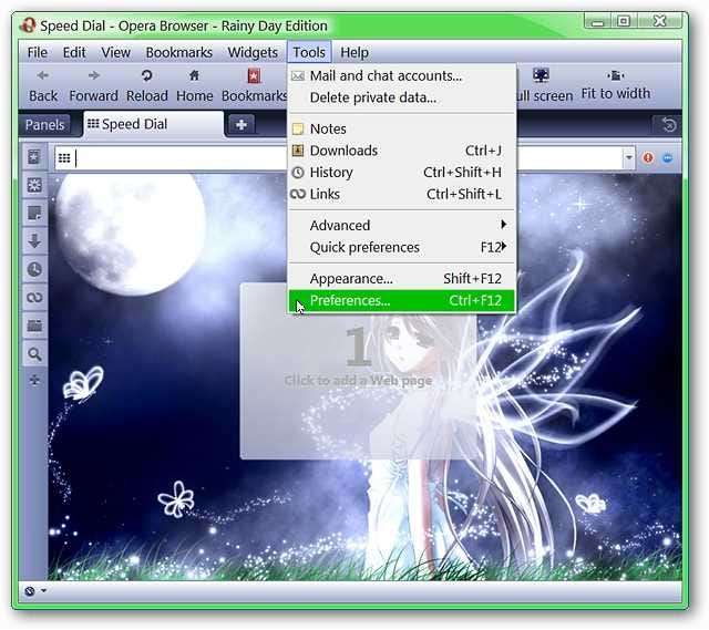 Artık kullanıcı komut dosyalarınız yeni evlerinde olduğuna göre, tarayıcınızın bunlara erişebilmesi için Opera'nın ayarlarını değiştirme zamanı gelmiştir. "Araçlar Menüsü" ne gidin ve "Tercihler ..." seçeneğini tıklayın.