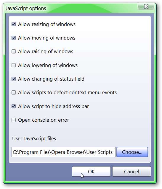 Not: Kullanıcı komut dosyalarına bakarken, Opera ile uyumlu olduklarından emin olun.