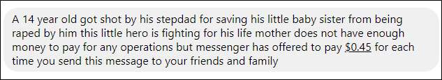 Veya başka durumlarda, başkalarına yardım sunar. Hepimiz şunları gördük: "Facebook, bu mesaj her paylaşıldığında küçük Timmy’nin kanser tedavisine 0,10 ABD doları bağış yapmayı teklif ediyor!" Üzgünüm çocuklar, hayır değiller.