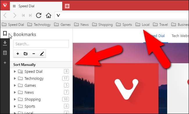 Yer imleri olmayan bir tarayıcı nasıl olurdu? Vivaldi, bir Yer İmleri panelinin yanı sıra ayarlarda etkinleştirilebilen bir Yer İmleri çubuğu içerir (varsayılan olarak görüntülenmez).