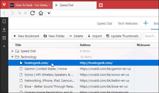 Bunların çoğu oldukça standarttır – Vivaldi’nin yer imleri, Firefox ve Chrome gibi yeni bir kutu veya sekme yerine bir panelde açılabilir, ancak bu, akıllara durgunluk veren bir iyileştirme değildir. Firefox'taki yer imlerinin Keyword özelliği, Vivaldi'deki yer imi takma adı özelliğine de benzer. Ancak Chrome'da, kullanmanız gerekecek anahtar kelime yer imleri oluşturmak için bir geçici çözüm .