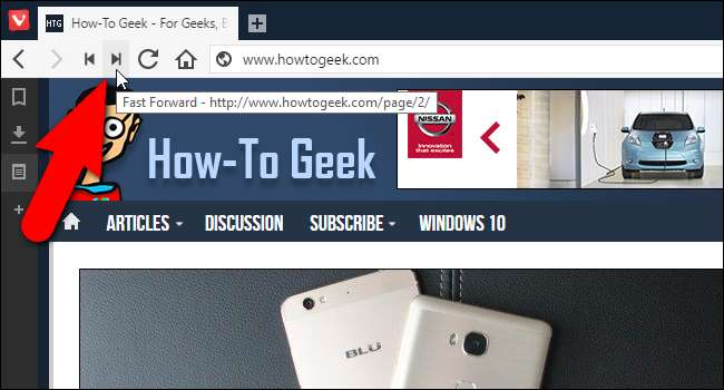 Muhtemelen tarayıcınızın araç çubuğundaki Geri ve İleri düğmelerine aşinasınızdır, ancak Vivaldi, her biri kendi özel kullanımlarına sahip bazı yararlı Geri Sar ve İleri Sar düğmeleri de ekler.