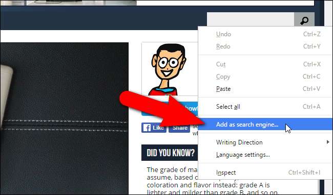 İster ayrı ister adres çubuğuna entegre edilmiş olsun, her tarayıcının bir arama kutusu vardır. Çoğu tarayıcı, birden çok arama motoru eklemenize ve kullanmak için varsayılan bir arama motoru seçmenize de izin verir. Ancak Vivaldi, bunu Firefox ve Chrome'dan biraz daha kolay ve doğrudan hale getiriyor. Sadece bir sağ tıklama ile arama kutusuna neredeyse tüm arama motorlarını ekleyebilirsiniz. Örneğin, Vivaldi’nin Arama kutusunda bulunan bir arama motoru olarak Nasıl Yapılır Geek’i ekleyebilirsiniz. Arama motoru olarak eklemek istediğiniz sitedeki Arama kutusunu sağ tıklayın ve açılan menüden "Arama motoru olarak ekle" yi seçin. Bu oldukça uygun.