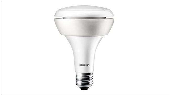 Evinizde gömme tavan aydınlatması varsa, 60 $ Hue BR30 ampul bu tür aydınlatma armatürlerine yöneliktir. Fotoğraftan da görebileceğiniz gibi BR30, Philips'in diğer Hue ışıklarından çok daha büyük bir ampuldür ve bu da onu bir tür sel aydınlatması için mükemmel kılar.