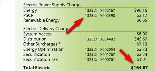 Faturanıza baktığınızda muhtemelen şunu göreceksiniz: herşey kafa karıştırıcı şeyler. Bunun için, bunun için ve diğer şeyler için ek ücret. Federal ve eyalet vergileri, hepsi ayrıntılı ve işlenmiş. Nihayetinde önemli olan, kaç kWh kullandığınız ve en sonunda Sam Amca, Devlet Adamı Steve ve Android Konseyi'nin mikro dilimlerini aldıktan sonra ne ödediğinizdir. Ay içinde 1325 kWh'nin üzerindeki örnek faturada tüketilmiş olup, elektrik kullanımı için toplam fatura 164,87 $ olmuştur. Faturayı tüketime bölersek: