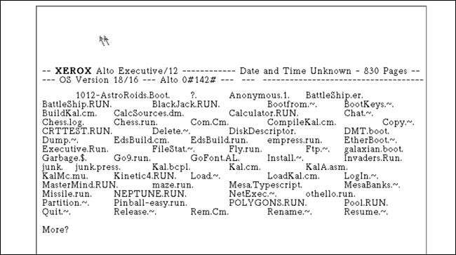 Xerox Alto yazılımını keşfederken, Alto'nun işletim sisteminin ("Alto Executive" denilen) olduğunu fark edebilirsiniz. GUI tabanlı değil . Bunun yerine, kullanmak için komutlar yazmanız gerekir. Ayrıca, tercih edilen Alto Dosya Yöneticisi, Neptune, grafiksel ve fare tabanlıdır, ancak simgelerin veya herhangi bir mekansal arayüzden yoksundur. Bulunacak hiçbir klasör var - ne verir?